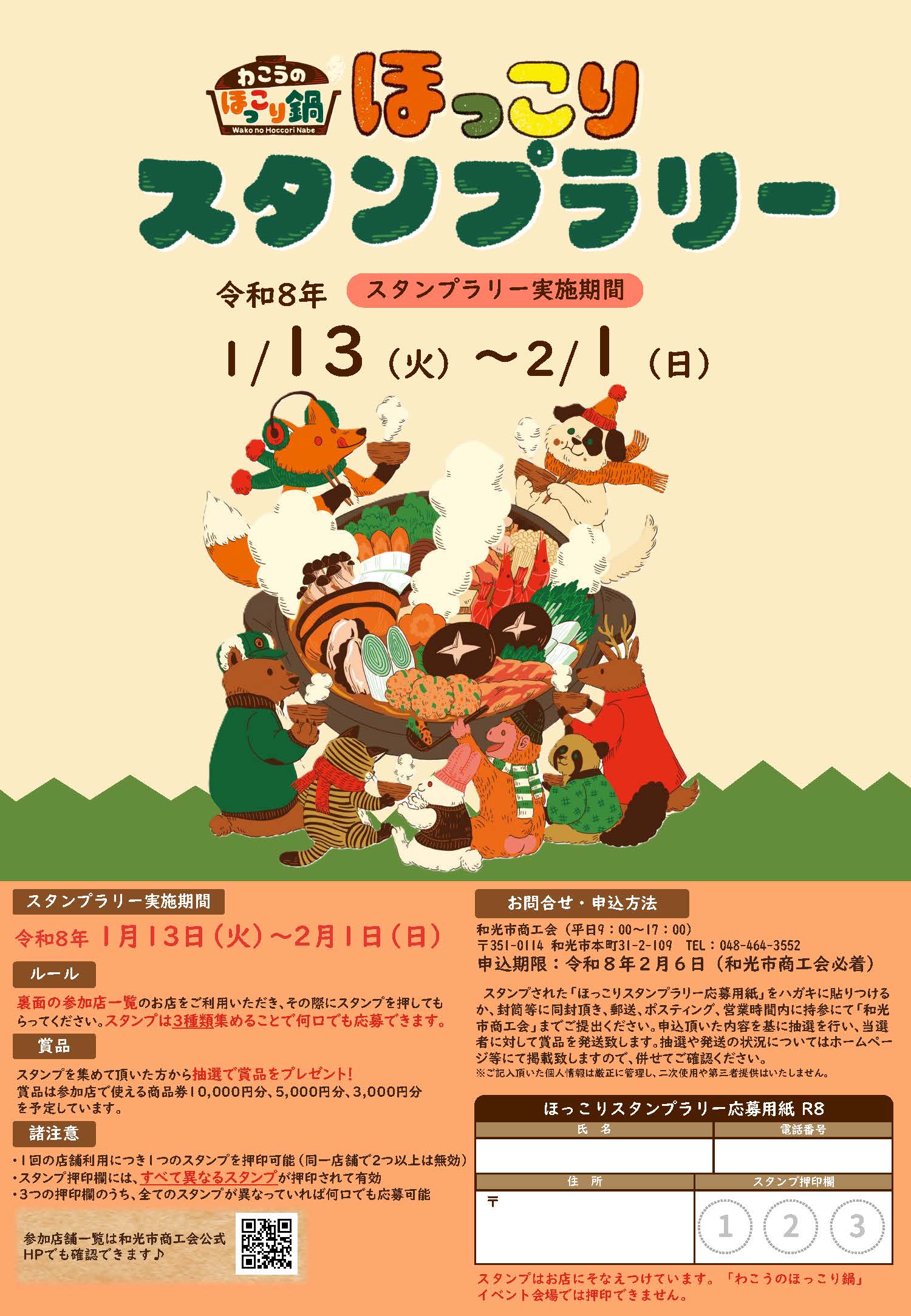 令和8年1月13日(火)~2月1日(日)まで『ほっこりスタンプラリー』を開催!
